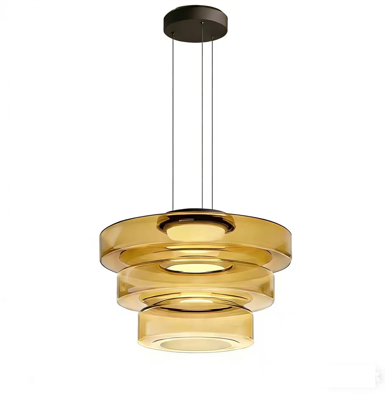 Luminaria colgante Giore en color acero con tapa de vidrio