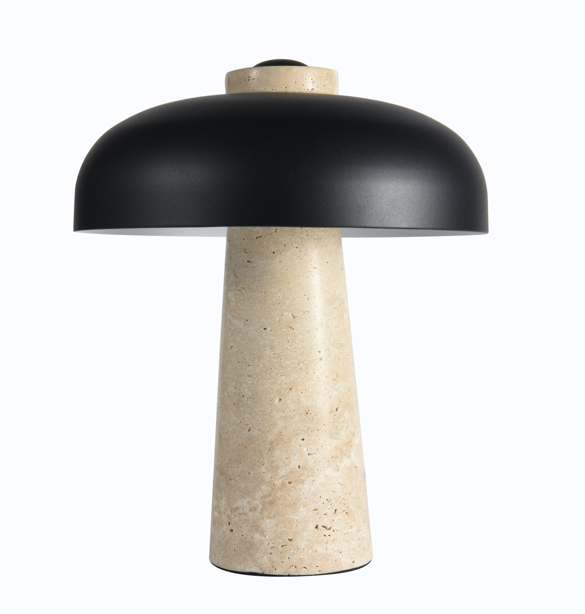 Luminaria de mesa , base travertino y pantalla negra.
