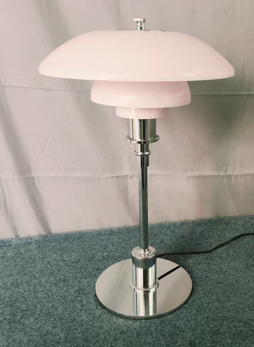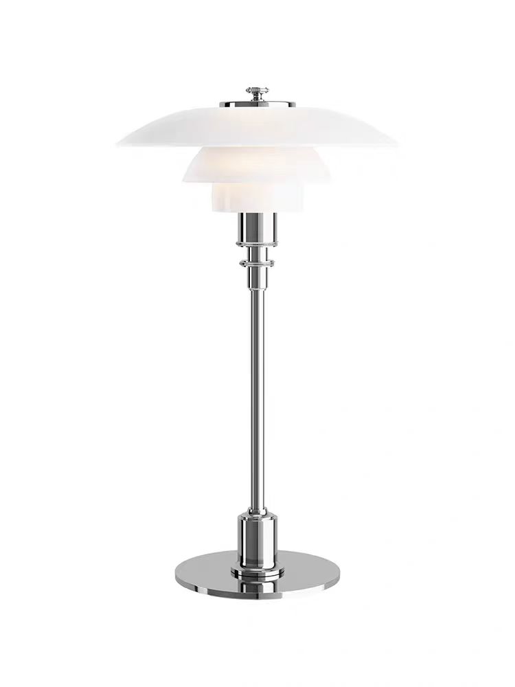 Luminaria de mesa en color cromo con vidrio blanco