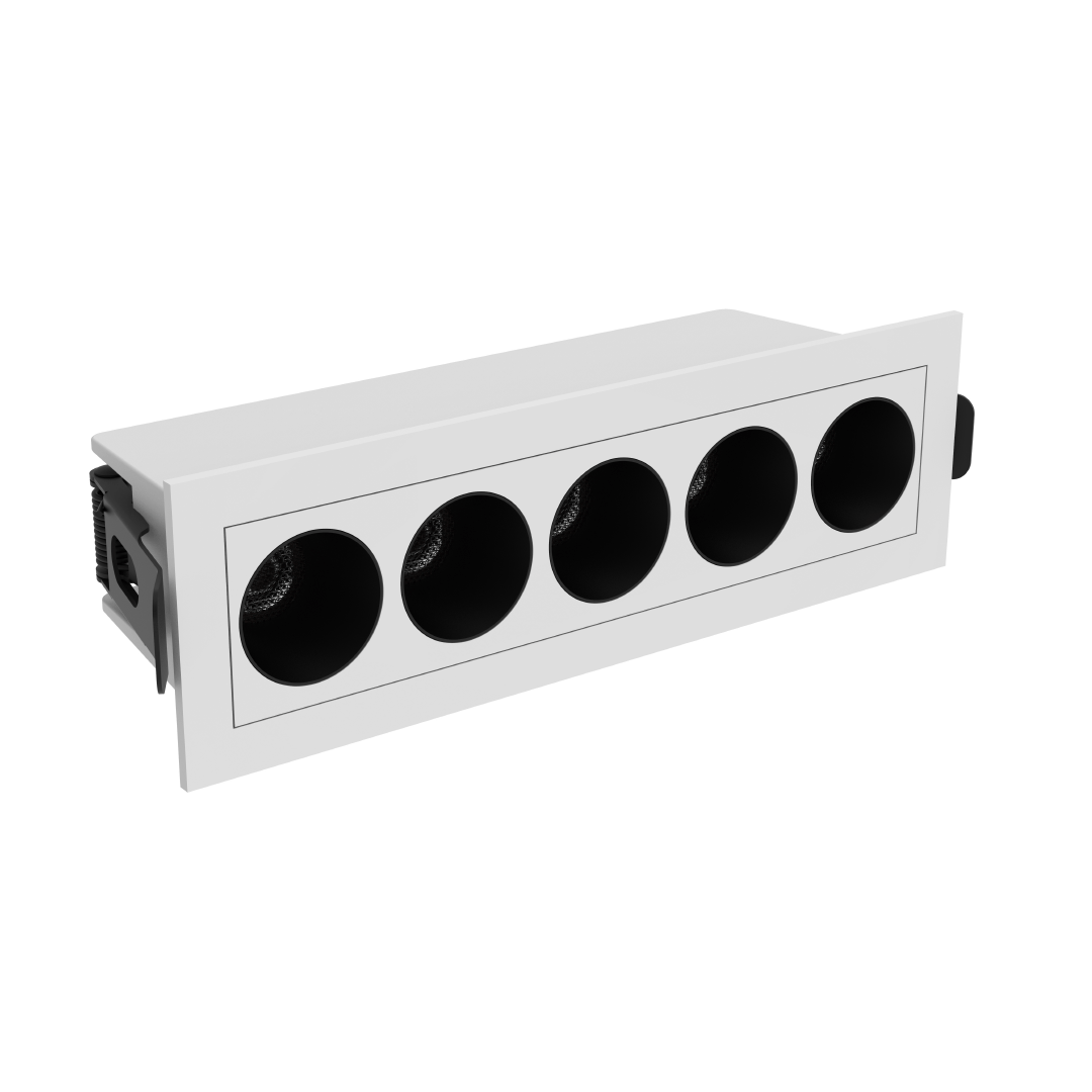 Spot para embutir rectangular blanco con interior negro .