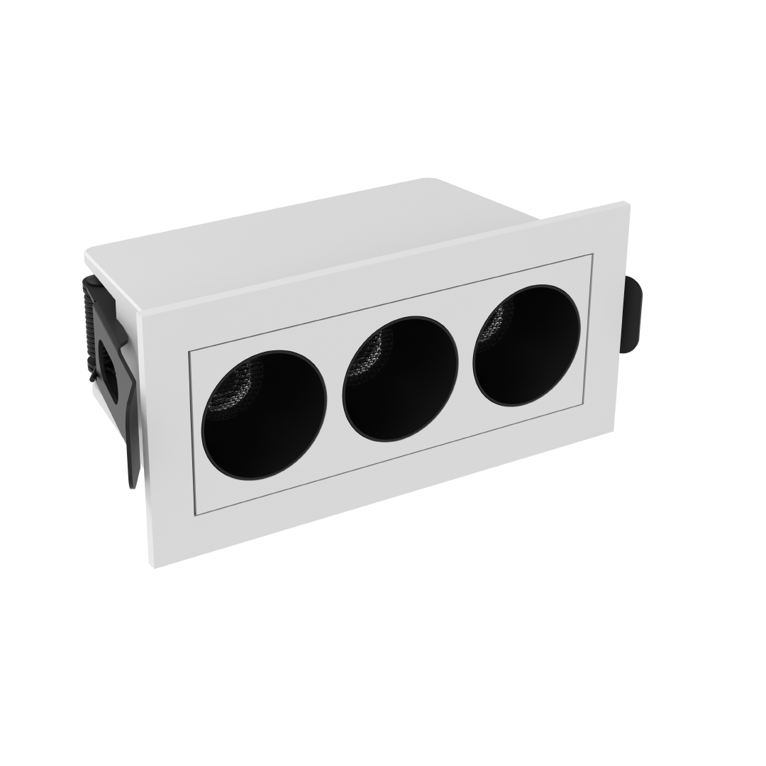 Spot para embutir rectangular blanco con interior negro .