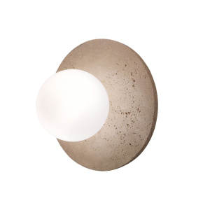 Aplique de pared base en travertino y vidrio opal .