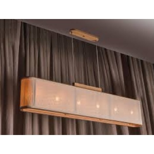 Luminaria colgante en madera tauarí con pantalla de esterilla.